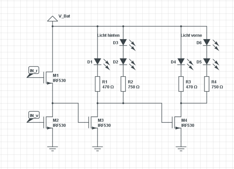 Led BeleuchtungNachdem die original Beleuchtung direkt am Motor ausgang hängt [=leuchtet nur wenns fahrt] und blau ist war eine Überarbeitung notwendig weisse 3mm Leds aus einem EW IV wo smd Leds reingekommen sind. Stromverbrauch für die Leds ~9mA Stromverbrauch wenn eingeschalten für die elektronik: 17mA langsamste Fahrt: 250-300mA Akku angesteckt, Schalter [der Werkzeugkasten] auf off: 0mA [<1mA]