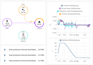 Verbindung: github.com/wlcrs/huawei_solar/wiki/Connecting-to-the-inverter Modbus TCP port am wlan Dongle muss vom Solar Installateur freigeschalten werden!ID muss man beim dongle auf 1 setzen, sonst kommt ein timeout Im Home-ASssistang "Power Flow Card Plus" installieren Grid: Power Meter Wirkleistung Solar Forecast einrichten