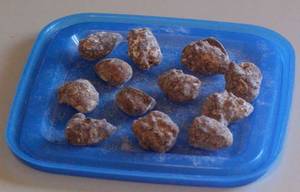 dann aufkochen kochen lassen, immer weiter, immer umrühren, dann wirds schaumig, noch a wengal kochen bis ma merkt des wasser is weg, nur no da geschmolzene zucker, dann von der platte nehmen und weiter rühren, mit der zeit wirds "trocken", weiterrühren, irgendwie müssten dann die mandeln mit der zeit so a zuckerschicht ham, dann wieder auf die platte und rühren bis der zucker an den mandeln anfängt zu schmelzen, immer weiter umrühren und irgendwann dann weg vom ofen, und dann auf a backpapier oder teller oder so einzeln auflegen und kalt werden lassen